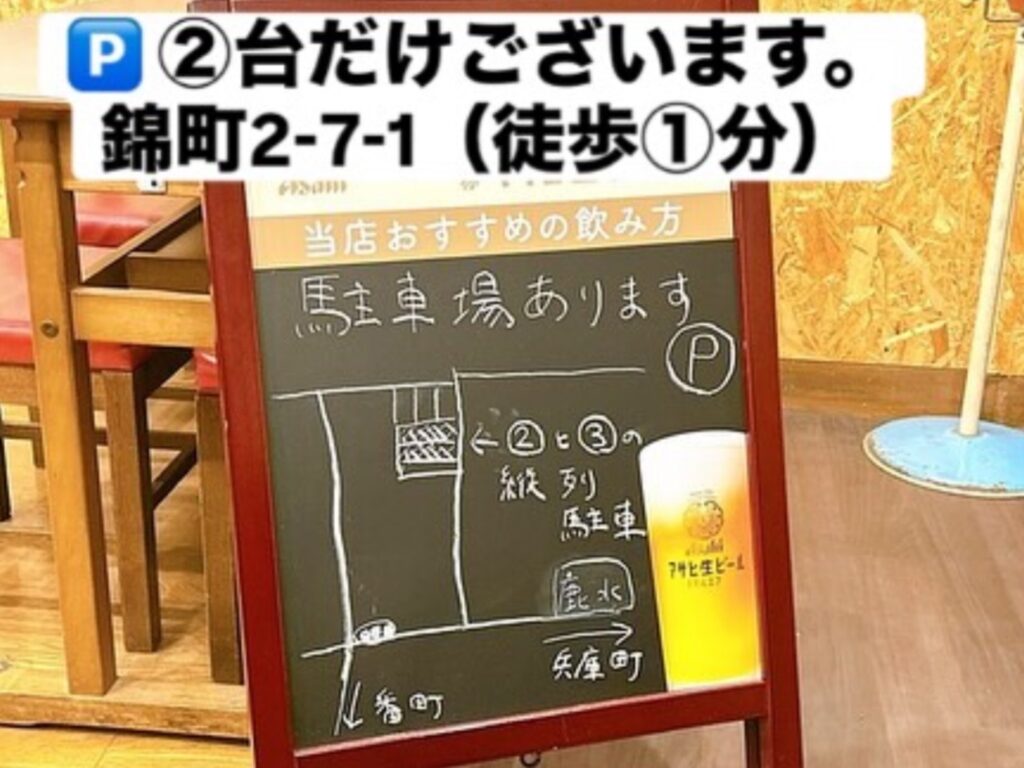お店すぐ側(徒歩1分)に専用🅿️あります(常時スタッフが停めていますので通常2台、最大4台)