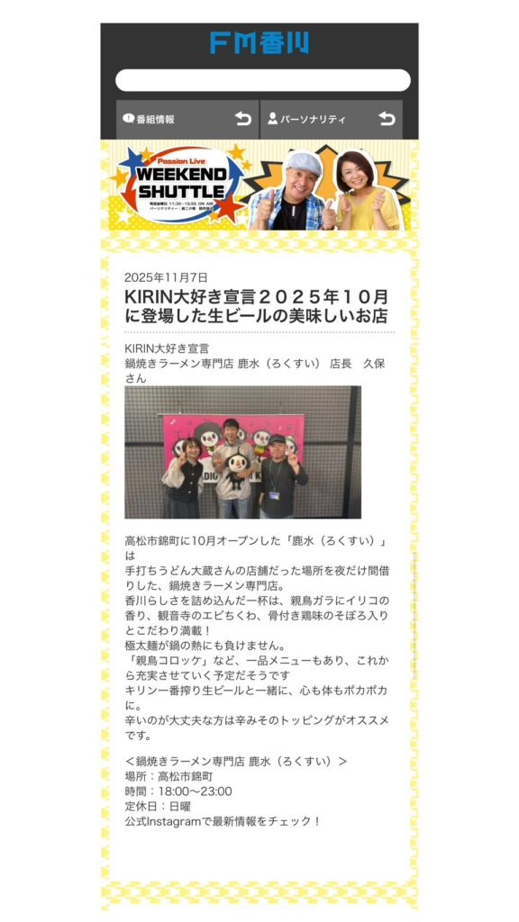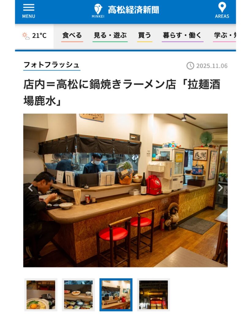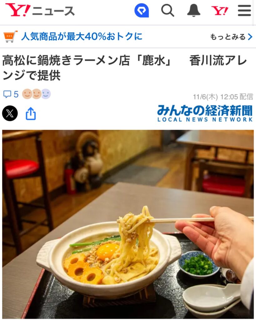 鹿水(ろくすい)は、さぬき地鶏ミンチと白味噌をベースとした香川県初の鍋焼きラーメンが自慢のお店です!
