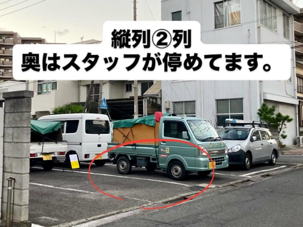 A dedicated parking lot is located right next to the store (1-minute walk). Staff vehicles are always parked there, so typically 2 spots are available, with a maximum of 4.